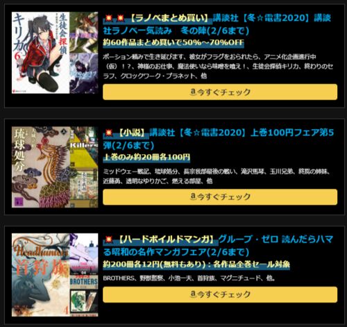 2/6(木)にKindleセールが大量に一斉終了! ラノベまとめ割や合本版セール、KADOKAWA異世界マンガ、100円小説、12円ハードボイルドマンガなど。複数巻セール対象作品が多いので一気読みチャンス! 開催中Kindleセール全部まとめてチェック! www.shinentai.com