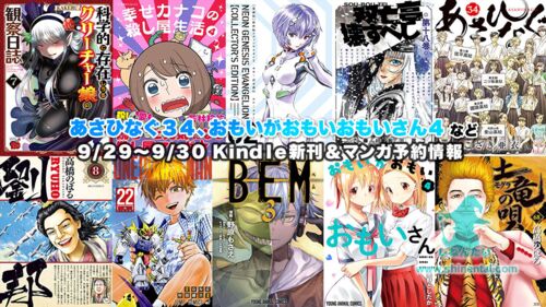 9/27(日)マンガ予約開始速報⇒邪神ちゃんドロップキック16、同居人はひざ、時々、頭のうえ。7書籍版、安達としまむら2Kindle版予約スタート! あさひなぐ34完結巻、劉邦8他小学館多めに発売9/29~9/30新刊&マンガ月別発売予定一覧 www.shinentai.com