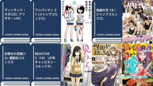 ジャンプやマガジンのマンガ人気作が多数書籍版から予約スタート。 鬼滅の刃18巻、ワンパンマン21巻、僕のヒーローアカデミア25巻などジャンプ人気作。 五等分の花嫁12巻、ヴィンランド・サガ23巻、七つの大罪39巻、進撃の巨人30巻、天気の子コミカライズ1巻…